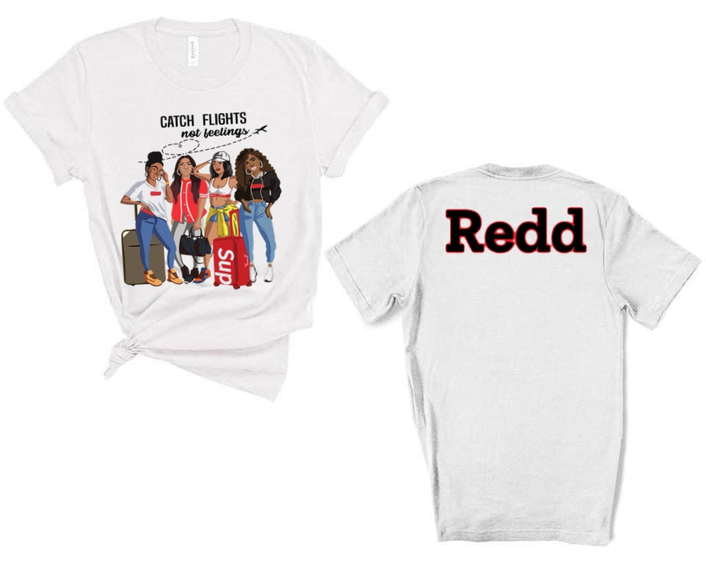 One women sized white T-shirt with design as shown...comes with personalized option name for back of shirt with color and font as shown...100% polyester with cotton feel...2-3 day turnaround... shirt only