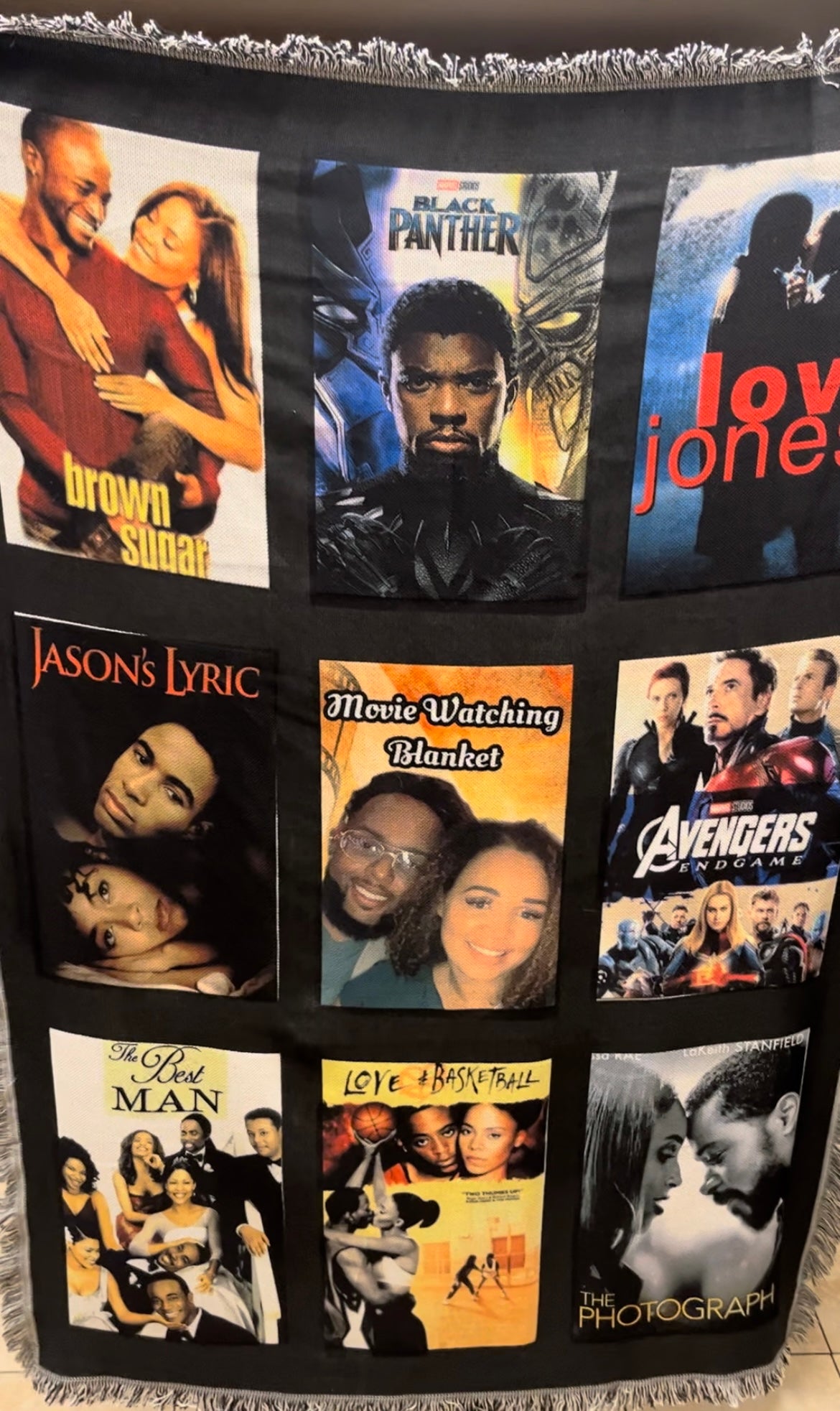 Large 40x60 inches woven polyester blanket...can have up to 9 pictures 11x17 size print or do 8 pictures and a short message in middle...this items has a 3-5 day turnaround if in stock please always chat with us if needed by specific date before ordering