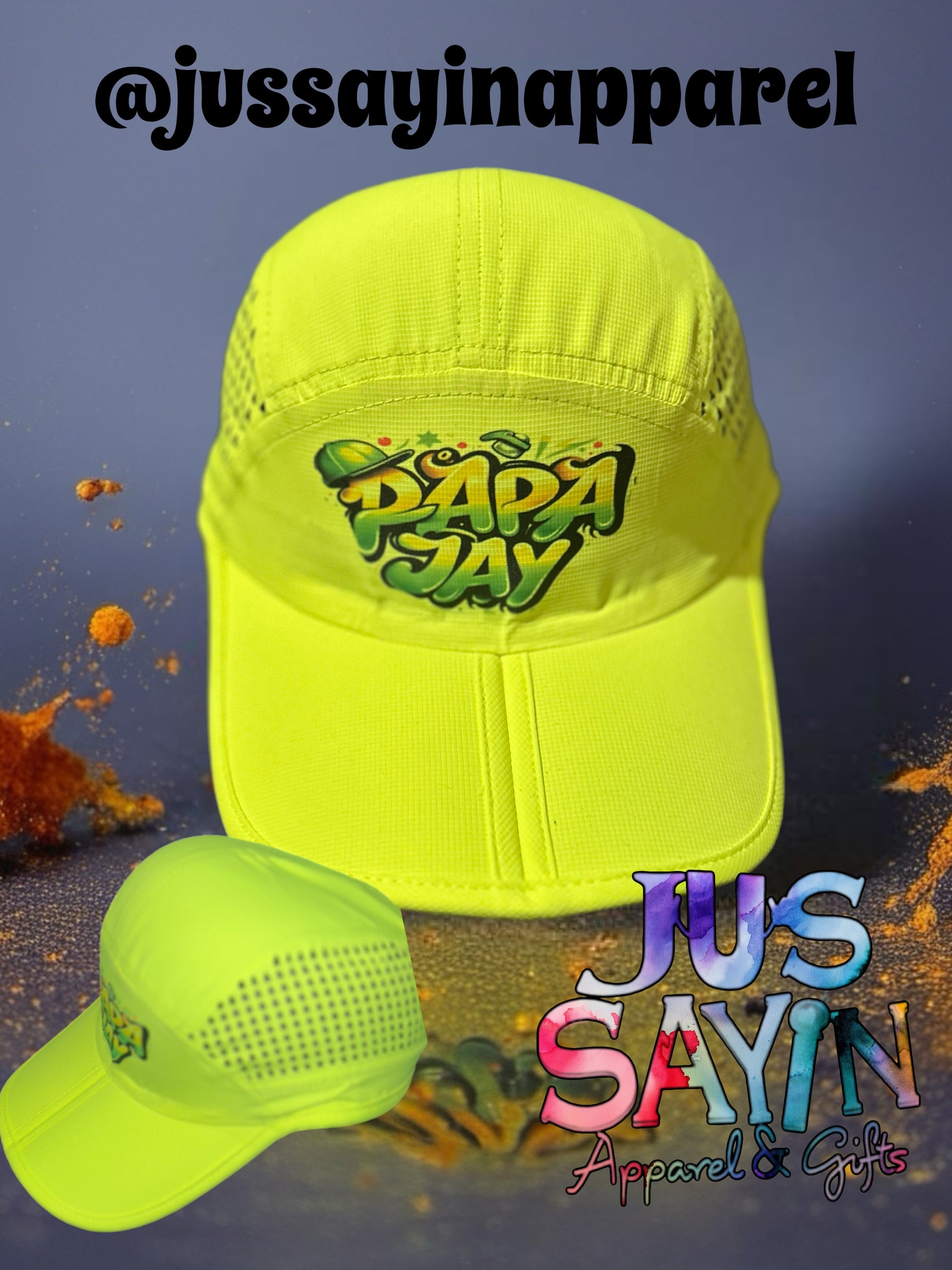 This hat can be customized to add any name up to 10 letters…your name will be designed in a airbrush style font as shown colors will all be free styled OR to create your own and add specific details please send order number and details via Social media @jussayinapparel IG or Facebook (preferred)