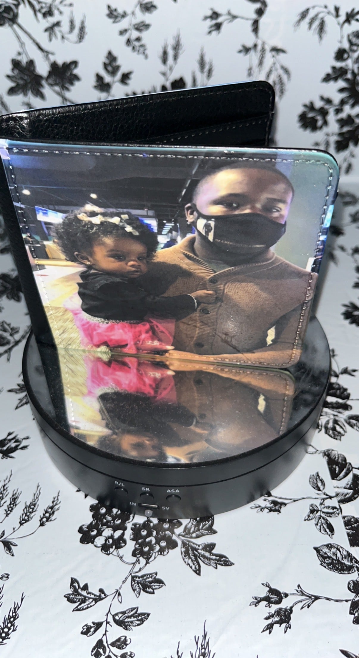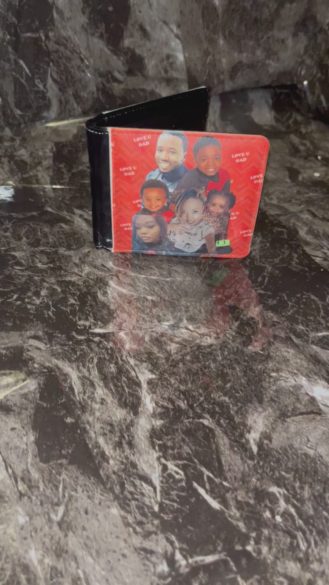 1 two-sided wallet can apply two pics within terms and conditions leather material. this item has a 48–72-hour turnaround 7-10 days if on back order please use chat with us feature if item is needed by specific date...great gift for men or women