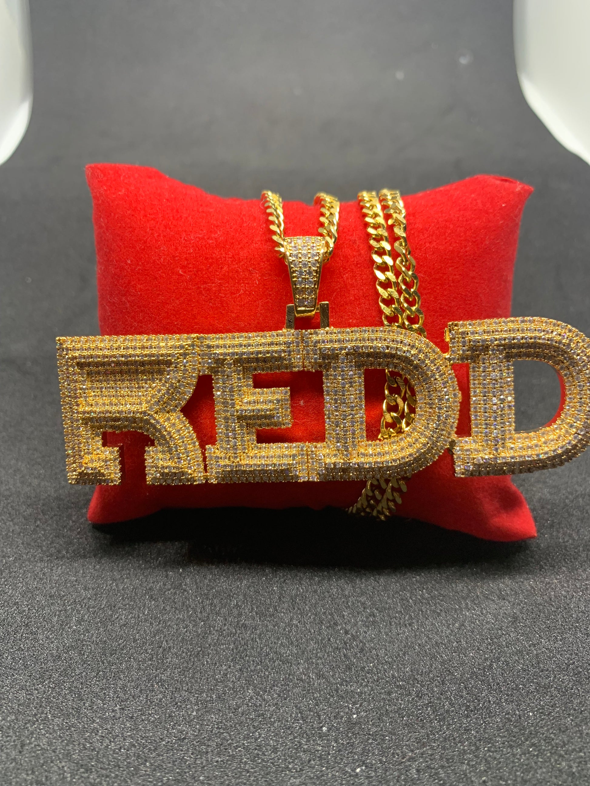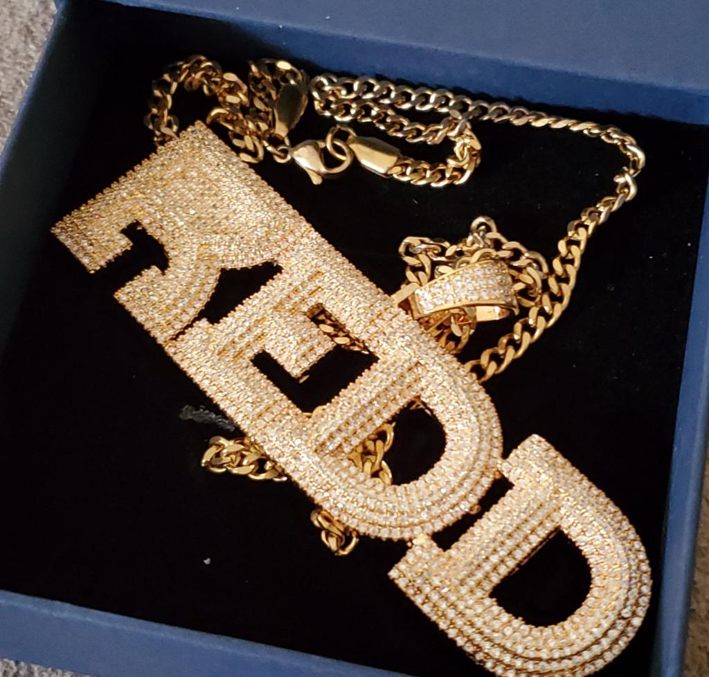 1 gold or silver plated name pendant up to min 2 letters up to 9 letters with stainless steel matching 22inch necklace (this item is not apart of our 24 hour turnaround and will take up to 3-4 weeks for shipping or local delivery)