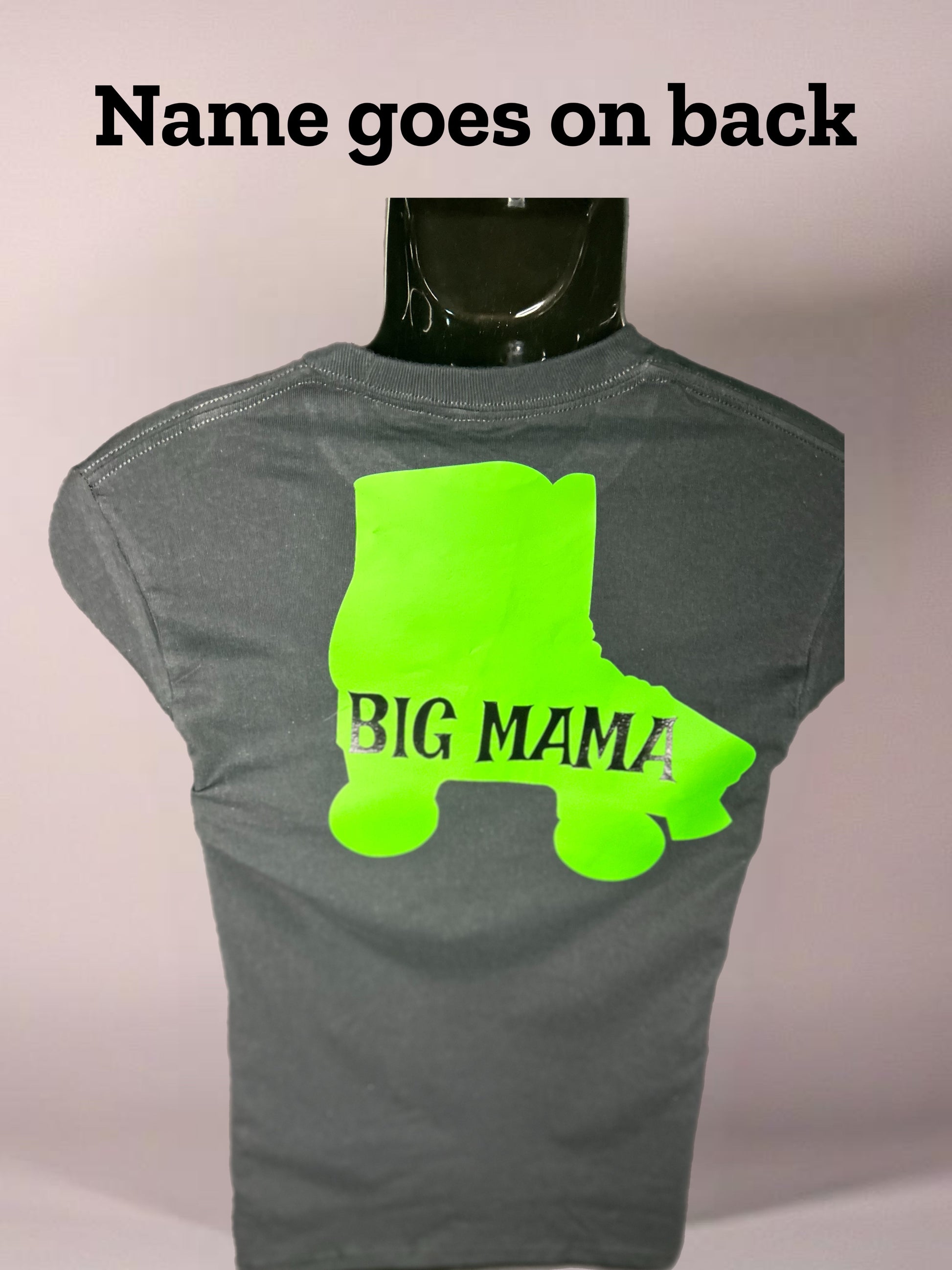 Choose between Glow in the dark green or Neon Pink both styles can be customized with name up to nine letters...design on back as shown...black cotton t-shirt...adult sizes...2-3 day turnaround.